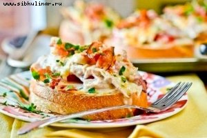 8 тонких ломтиков телятины (размером 3х5 дюймов) 1 чашка мелко нарезанного вареного куриного мяса 1 столовая ложка мелко нарезанных луковичек зеленого лука 1/2 чашки панировочных сухарей 1/4 чашки свеженатертого сыра "Пармезан" 1 чайная ложка свежего рейхана (или 1/4 чайной ложки сушеных листьев) 2 или 3 крупных яйца 1 чайная ложка соли 1/2 чайной ложки свежепомолотого черного перца 6 или больше столовых ложек сливочного масла 18 грибов 1/4 чашки мелко нарубленного лука 1 1/4 чашки сухого белого вина 1 чашка мелко нарезанных помидоров 4 листа свежего базилика (или 1/2 чайной ложки сушеных листьев)