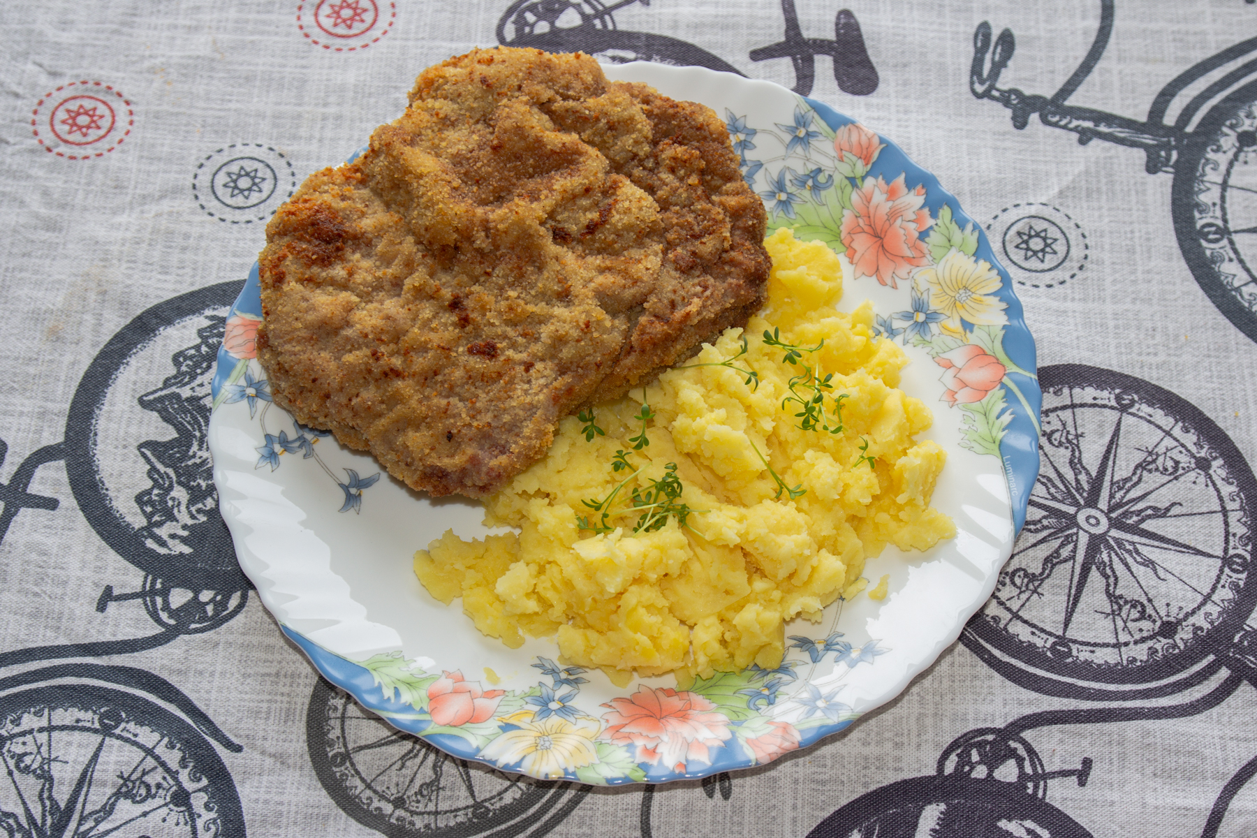 Из тонкого или толстого края либо верхней или внутренней части задней ноги говядины нарезать мясо поперек волокон ломтями толщиной 10-12 мм. Отбить до толщины 7-8 мм, посыпать солью и перцем, смочить в смеси яйца с молоком, запанировать в молотых сухарях.