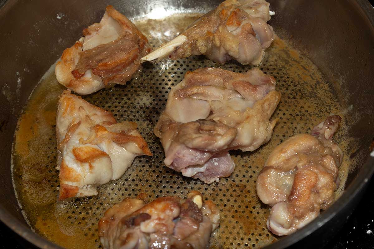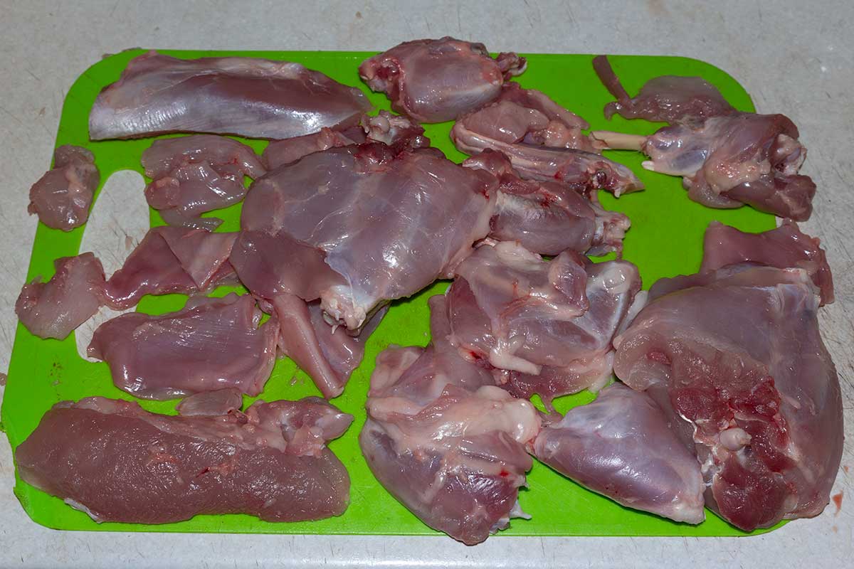 Кролика разделываем на кусочки.