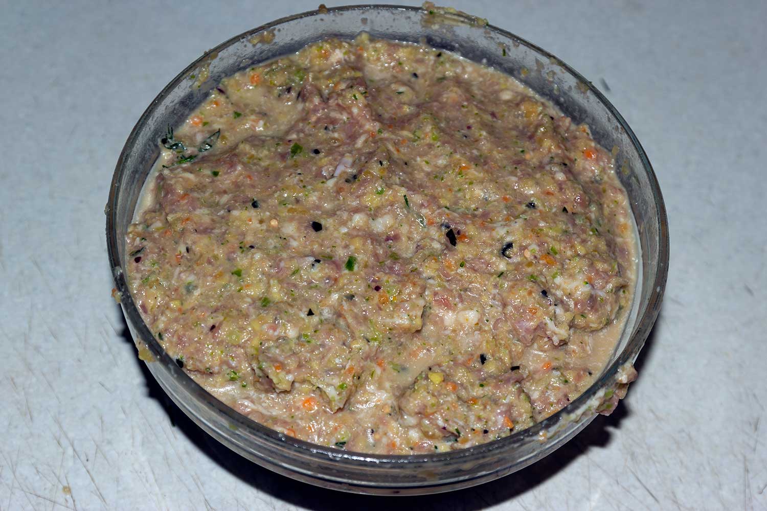 Пропустить овощи 2 раза через мясорубку, смешать с мясным фаршем, добавить яйцо, молоко, специи, порубленную зелень и хорошо вымесить. После этого добавить манку и снова хорошенько перемешать, можно взбить.