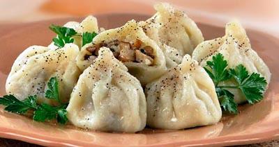 Тесто раскатайте в тонкий пласт и вырежьте кружочки. На середину каждого положите фарш, края кружочка соберите над фаршем, придавая изделиям грушевидную форму, и сожмите пальцами.