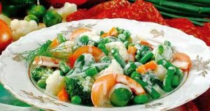 250 г свежих или мороженых креветок, 200 г ветчины или колбасы, большая луковица, 2 сладких зеленых перца, 6 яиц, немного растительного или сливочного масла, молотый красный сладкий перец, соль.