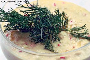 1 сельдь (500 г), 125 г сетки, остающейся после перетапливания жира, 4 ломтика ветчины, 25 мл поварского вина, 17,5 г соли, 10 г лука-порея, 75 г сахара, 25 г свиного сала без соли (нарезанного кубиками), 4 сушеных китайских гриба (замоченных в теплой воде), 2 ломтика имбиря, 8 горошин сычуаньского перца, 60 г свиного жира.