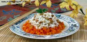 Баранину натереть солью, приготовить рассыпчатую гречневую кашу, смешать ее с сырым рубленым луком и положить на противень между реберной и грудной частями баранины, добавить немного воды или бульона и жарить в духовке до готовности. Кашу нужно перемешивать, чтобы лук равномерно прожарился.
