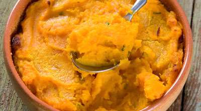 Мякоть тыквы нарежьте кубиками, отварите в кастрюле подсоленной воды и протрите через сито. Добавьте к тыкве часть сливочного масла, рубленую зелень петрушки, мелко нарезанную курагу, сахар, молотую корицу и влейте молоко. Полученную массу хорошо перемешайте. Выложите массу на смазанную маслом сковороду, посыпьте молотыми сухарями или предварительно замоченной манной крупой, разложите сверху нарезанное кусочками оставшееся масло и запекайте блюдо 30-40 минут при 230 С. Подавайте тыквенную запеканку, разрезав на порции и оформив веточками зелени.