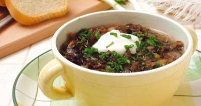 Разогрейте масло и обжарьте мелко нарезанный лук до размягчения примерно 5 минут. Добавьте измельченный чеснок и 2 чайные ложки кориандра. Опустите мелко нарезанные грибы, жарьте ещё 3-4 минуты. Влейте бульон, добавьте 3 столовые ложки измельченной зелени петрушки, перемешайте. Доведите до кипения, накройте крышкой и варите на слабом огне 10 минут. Подсыпьте хлебные крошки, соль и специи, варите 1 минуту. Снимите с огня и добавьте сметану.