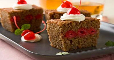 Масло разотрите с сахаром, добавьте яйца, тёртый хлеб, корицу, гвоздику и цедру, перемешайте до получения однородной массы. Массу разделите на 2 равные части. Одну часть выложите в смазанную маслом форму, сверху положите вишню, затем - оставшуюся массу. Запекайте 20-30 минут при 180 С. Остудите. Оформите взбитыми сливками и вишней.
