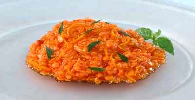 Чечевицу замочите на 4 часа в воде, затем воду слейте. Вновь залейте чечевицу водой и отварите до готовности. Лук и морковь нарежьте соломкой, обжарьте на смеси растительного и сливочного масла, добавьте толчёный чеснок, красный перец, гвоздику, соль, всыпьте муку, перемешайте. Введите томат-пюре, влейте отвар чечевицы и варите соус до загустения. Заправьте чечевицу приготовленным томатным соусом.