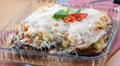 Каждый слой смазывайте приготовленным соусом, посыпайте пармезаном и оставшимся измельченным базиликом. Верхний слой также смажьте соусом и посыпьте пармезаном. Запекайте баклажаны 40-45 минут при 170-180 С.