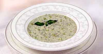 Огурцы очистите от кожицы, разрежьте пополам и чайной ложкой удалите семена. Нарежьте огурцы мелкими кубиками. Оставьте часть для оформления. Оставшуюся огуречную мякоть взбейте в блендере с чесноком и мятой. Посолите, поперчите. Смешайте с йогуртом. Добавьте орехи, укроп, кубики огурцов, лимонный сок и оливковое масло. Перед подачей выдержите суп в холодильнике. Подавайте суп в тарелках.