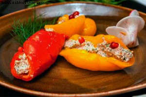 Готовят заправку из уксуса, растительного масла, соли и перца и заправляют ею салат.