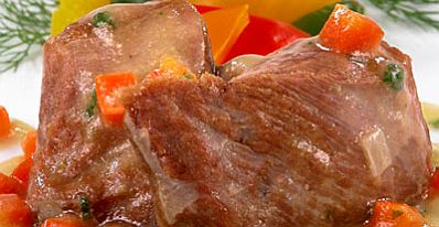 Филе нарежьте кусочками и обжарьте на масле до золотистого цвета. Добавьте лук, мелко нарезанную морковь, тимьян, петрушку, лавровый лист, часть бульона, немного портвейна, и тушите до готовности. Оставшиеся портвейн и бульон соедините с кукурузной мукой, добавьте смесь к филе, посолите, поперчите, прогрейте. При подаче филе выложите на блюдо, гарнируйте припущенными овощами, оформите зеленью.