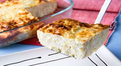 Отварите соцветия цветной капусты в слегка подсоленной воде, откиньте их на дуршлаг и дайте воде хорошенько стечь. Капусту мелко порубите, добавьте тёртый сыр, яйца, протёртый творог и хорошо взбейте смесь в однородную массу. Теперь можно выложить её в форму для запекания, предварительно смазав маслом и посыпав панировочными сухариками (желательно, из пшеничного хлеба). Массу разровняйте и поставьте в духовку на 20-25 минут. Подать запеканку со сметаной.