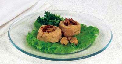 Фасоль замочите в холодной воде на 5-6 часов, затем залейте свежей водой и варите с добавлением лука и кореньев до готовности. Отвар слейте, фасоль протрите через сито. К пюре добавьте соль, перец, яичные желтки, перемешайте. Для начинки грибы нарежьте мелкими кубиками и обжарьте на масле. Сформуйте из пюре 8 невысоких цилиндров, в середине каждого сделайте углубление. Заполните волованы начинкой из грибов, посыпьте тёртым сыром. Запекайте 8-10 минут при 250 С. Подавайте, оформив зеленью.