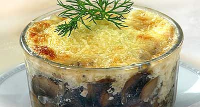 Подавайте жюльен горячим в кокотницах, поставив их на тарелочки.