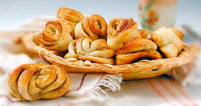 Готовят дрожжевое тесто опарным способом. Готовое тесто раскатывают в жгут, делят на 10 одинаковых кусков, формуют в шарики и раскатывают в удлиненные лепешки толщиной 3-5 мм. Поверхность лепешек смазывают растопленным маслом, посыпают корицей с сахаром и сворачивают в виде рулета. Рулет складывают пополам, края скрепляют, в месте сгиба делают 1-2 продольных надреза. Сформованные плюшки кладут на смазанный жиром противень, разворачивая надрезы слоями вверх, и дают расстояться в тёплом месте. Выпекают 10-15 минут при 230-240 С. Готовые плюшки охлаждают, накрыв полотенцем, а перед подачей посыпают пудрой.