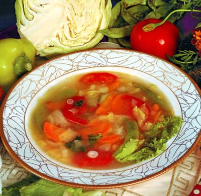 В кастрюлю с кипящей соленой водой добавить измельченную белокочанную капусту и картофель, нарезанный соломкой. Варить в течение 10-15 минут.