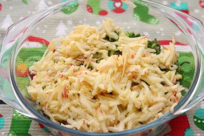 Яблоко очистить от кожуру и натереть на крупной терке.