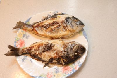 С обоих сторон на рыбе нужно сделать надрезы в виде сетки. Сетка пожетет избавиться от мелких костей, при жарке они просто растворяются. Данная хитрость очень полезна и при жарке речного карася. Теперь рыбу нужно хорошо посолить внутри и снаружи.
