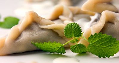 Тесто раскатайте в пласт, с помощью круглой выемки вырежьте кружочки. На каждый кружочек положите начинку, края теста соедините и защипните. Вареники варите 5 минут в подсоленной воде.