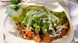 Затем подмешать йогурт. Заправить салат полученным соусом и сразу же подавать.