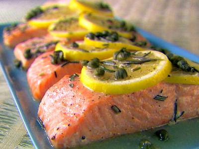 Лосося почистить, помыть и нарезать на порционные куски. В центр фольги выложить лосося. Посыпать лимонно-перечной приправой. Посолить. Поперчить. Сверху выложить кольца лимона. Фольгу плотно завернуть.