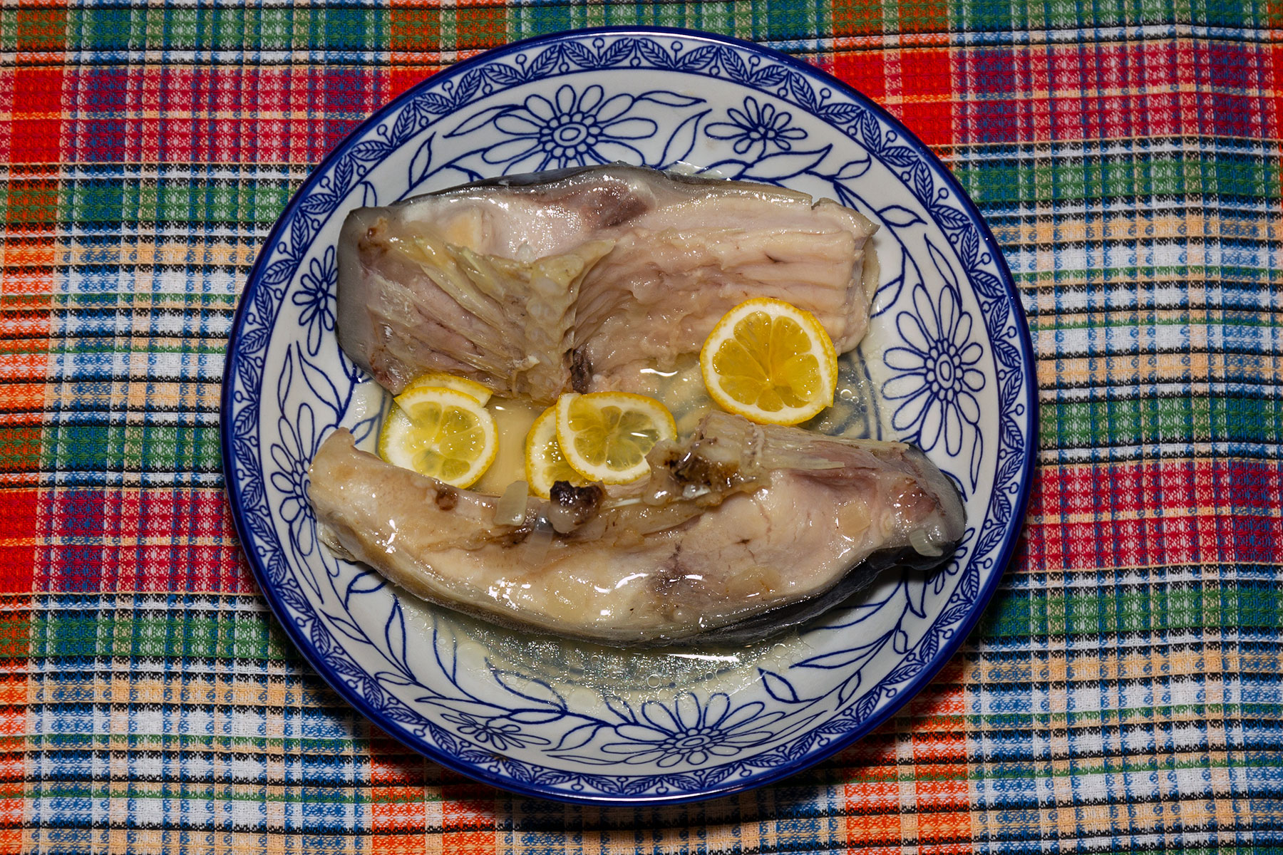Карпа почистить. Лучше взять зеркального карпа, у него мало чешуи.