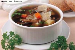 В сковороде с раскаленным маслом обжарить мясо. Добавить лук, помидоры и чеснок. Перемешать. Жарить в течение 3-5 минут. Добавить остальные овощи. Перемешать. Посолить. Поперчить. Влить жидкость из-под лапши. Перемешать. Тушить на умеренном огне в течение 30-40 минут.