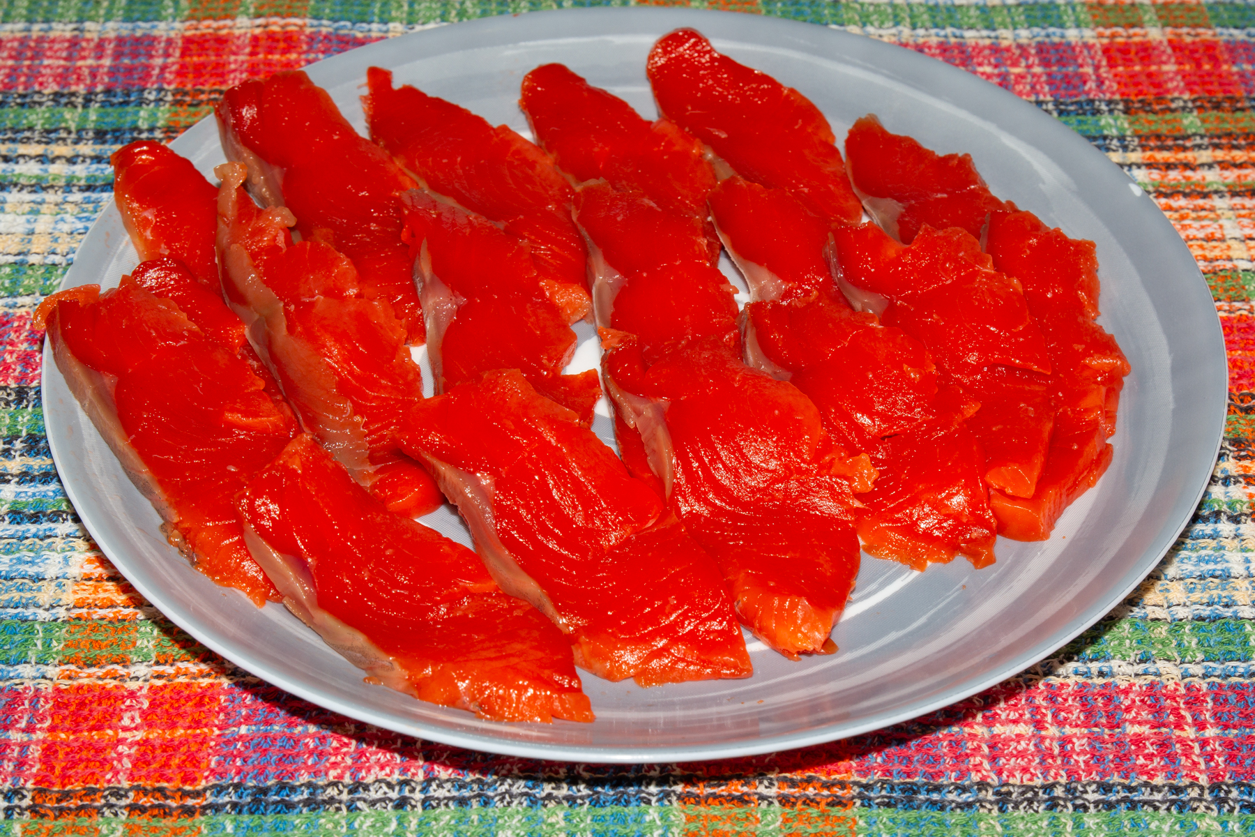 Филе семги помыть, нарезать на большие куски и выложить в кастрюлю, посыпать смесью соли и сахара. Тщательно перемешать. Закрыть кастрюлю крышкой и убрать холодильник на 36 часов.