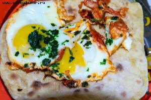Грудинку разрубить на небольшие кусочки, положить в холодную воду и отварить до полуготовности. Добавить промытый рис, нашинкованный и спассерованный с томатной пастой лук, толченый чеснок, сушеную зелень, ткемали, перец и варить до размягчения риса.