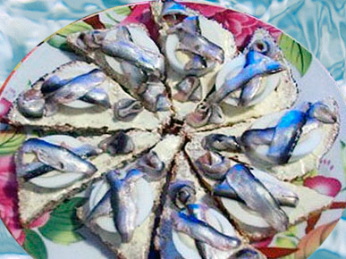 Хлеб нарезать на ломтики, намазать маслом. Кильку выложить на хлеб, украсить измельченной зеленью.