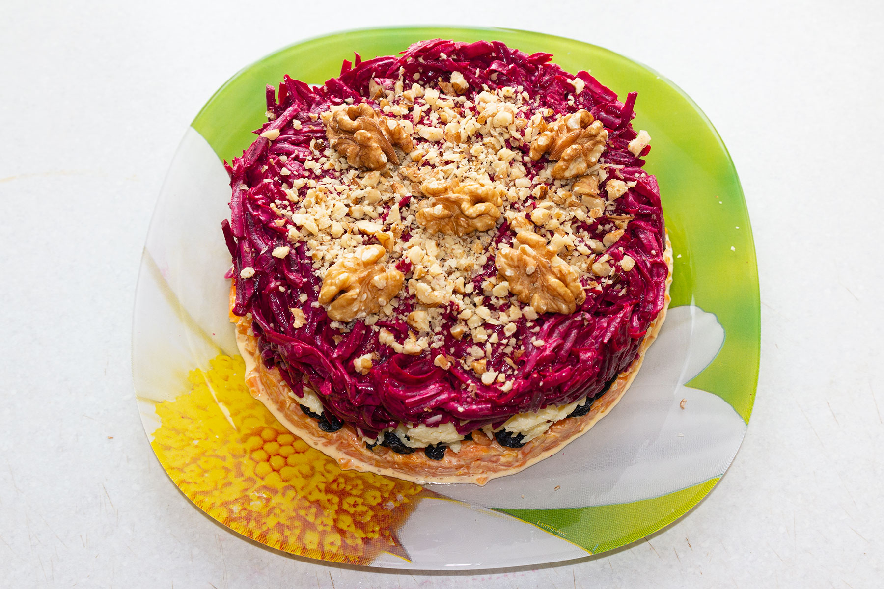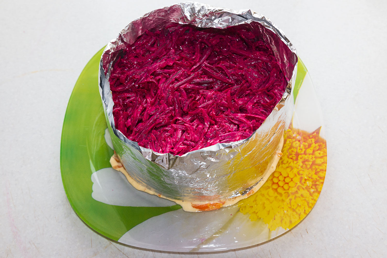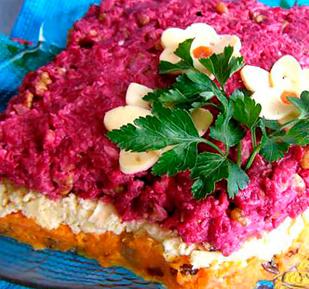 В салатник выложить слоями: