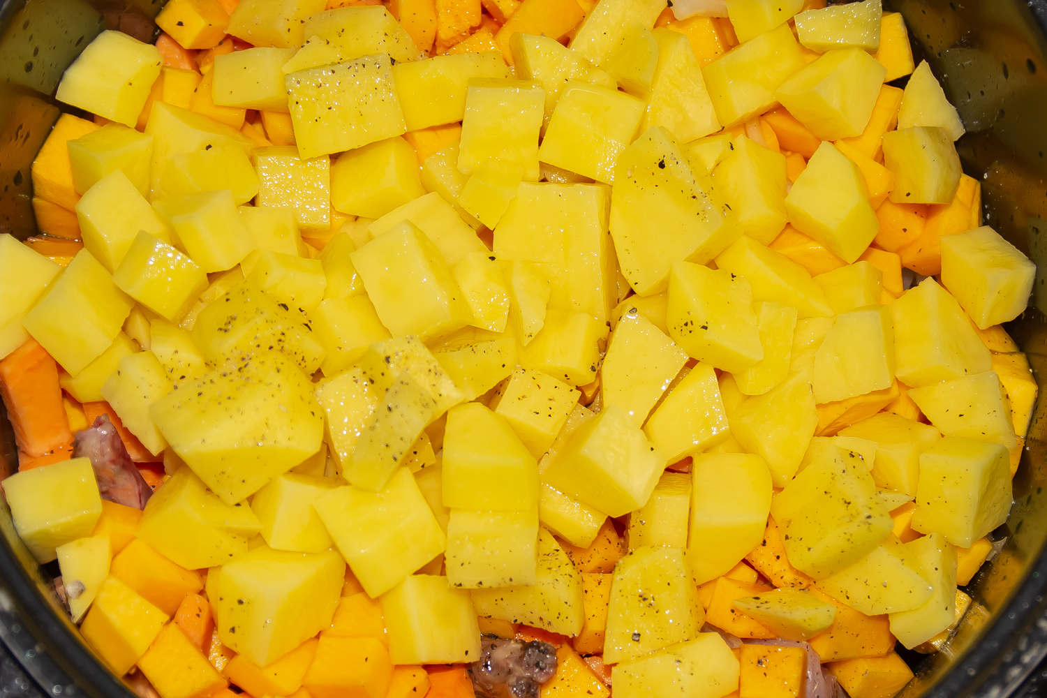 нарезанный картофель по рецепту Кролик, тушенный с тыквой и морковью