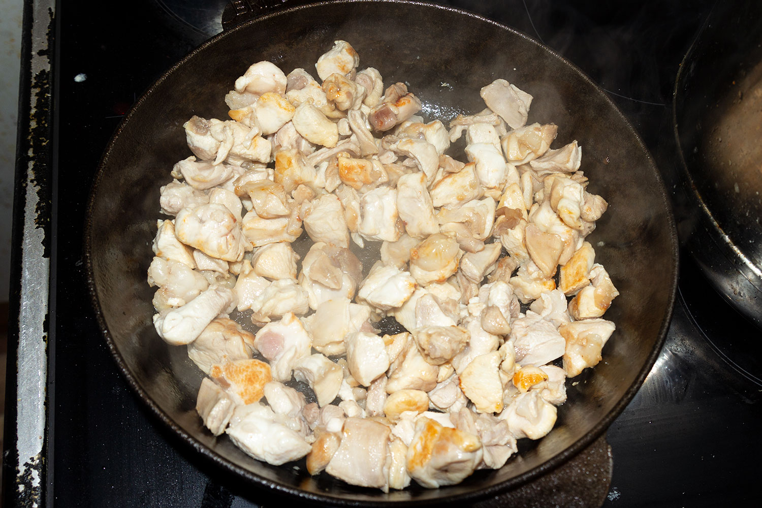 Быстро опустить помидоры в кипящую воду, затем обдать холодной водой, снять кожицу и удалить плодоножку. Нарезать их большими кусками.