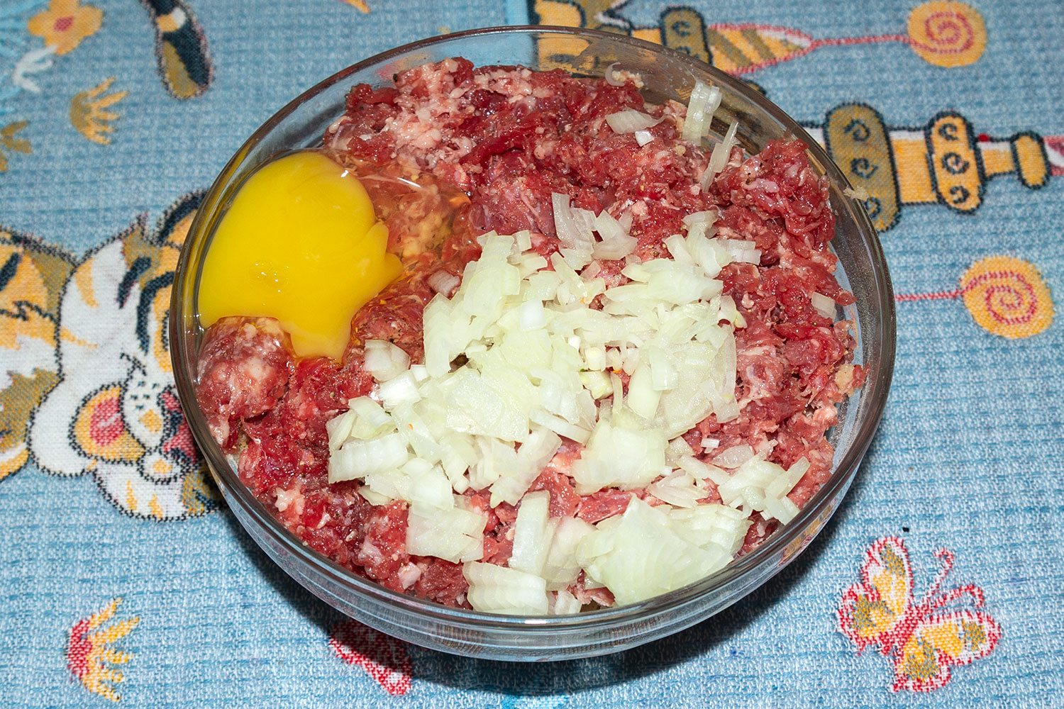 Клюкву перебрать и вымыть. Лук очистить, вымыть, измельчить, перемешать с фаршем, яйцом, панировочными сухарями, посолить и поперчить.