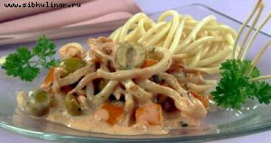Морковь и лук нарезать соломкой и обжарить на растительном масле.