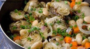 Картофель тщательно вымойте и сварите в подсоленной воде до полуготовности. Цукини нарежьте брусочками, морковь и лук нашинкуйте. В казане, где обжаривалась индейка, обжарьте морковь и лук. Затем добавьте индейку, нарезанный кусочками болгарский перец и лавровый лист.