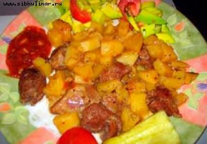Хлеб, 250 г брынзы, 1—2 помидора, 1 луковица, сок 1/4 лимона, 1/2 стакана рафинированного подсолнечного масла, 1 стручок печеного перца, черный и красный перец по вкусу, 1 вареная морковь, 1 соленый огурец.