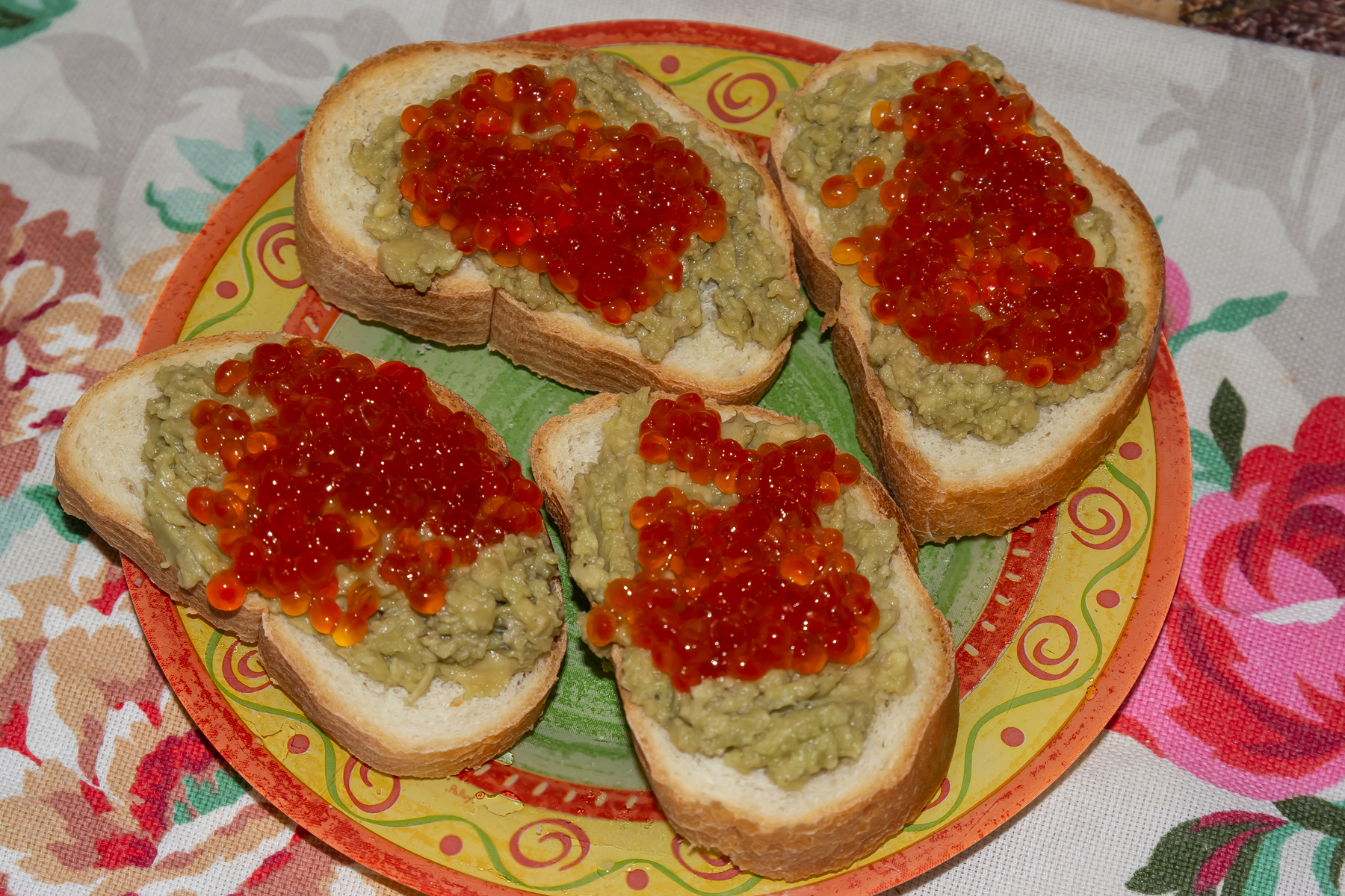 Выложить авокадо на аккуратно нарезанные ломтики хлеба.