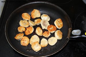 Бекон нарезать маленькими кубиками и обжарить на сковороде под крышкой.