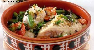 Поджаривают разделанного и посоленного цыпленка в кипящем масле до подрумянивания, затем вынимают. В оставшемся жире прожаривают нарезанное сало, затем поджаривают на нем мелко нарезанный лук. Добавляют томат-пасту, жарят 1–2 мин, посыпают красным перцем, кладут лечо (или нарезанный зеленый перец) и помидоры. Солят, немного кипятят, кладут цыпленка, накрывают крышкой и тушат до размягчения.