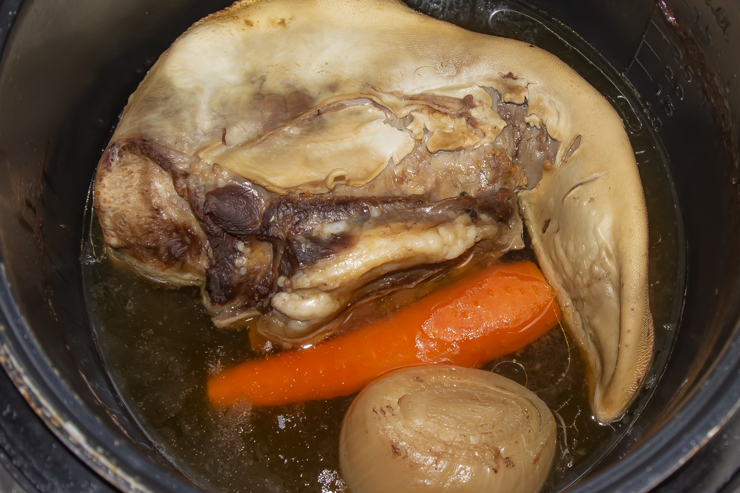 Подготовленные языки заливают горячей водой, добавляют нарезанные коренья, лук, соль, лавр, перец горошком и варят до готовности.