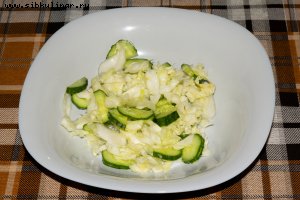 Твердый сыр и ананасы нарезают кубиками, орехи измельчают. Укладывают слоями в креманку на лист салата. Заправляют смесью сметаны и протертого через сито творога.