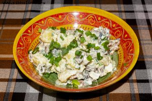 Вместо соленых или маринованных грибов можно использовать консервированные или вареные.
