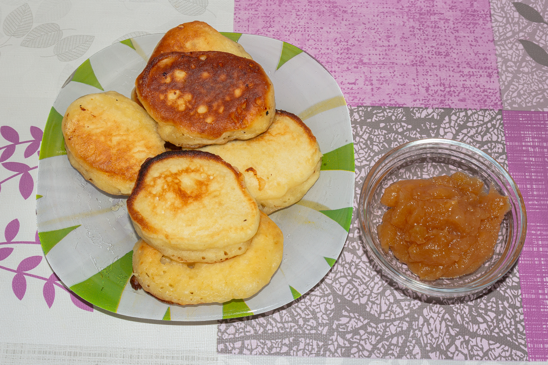 Яйца взбить с сахаром, солью и содой, добавить кефир, муку и растопленное сливочное масло. Тесто перемешать, оставить на 15 минут в теплом месте. Выпекать оладьи на смазанной растительным маслом сковороде.