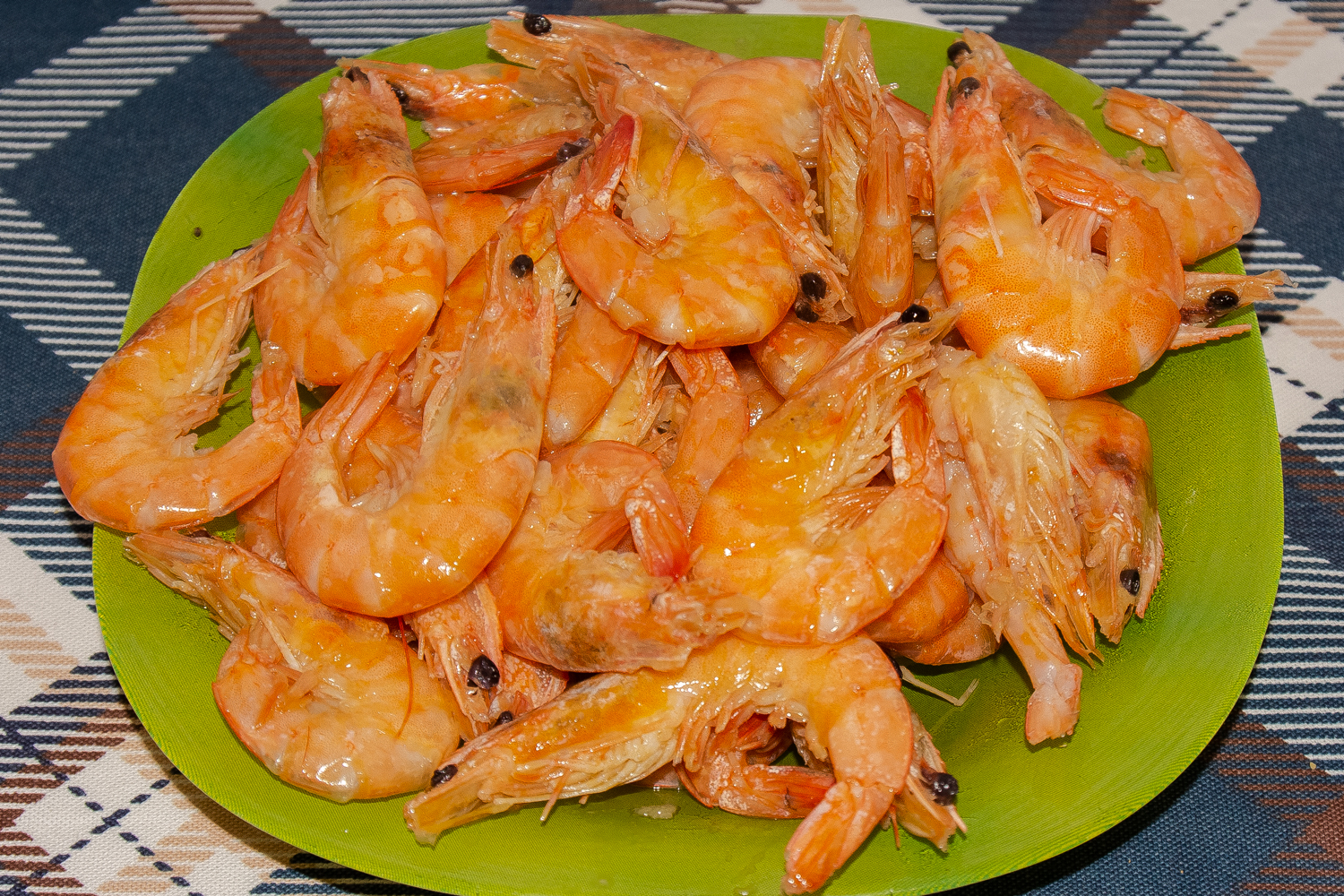 Креветки сперва размораживаем и обсушиваем. На сковороде разогреваем оливковое масло. Чеснок раздавливаем ножом и отправляем в хорошо разогретую сковороду. Обжариваем минутку и убираем из сковороды. В ароматное чесночное масло всыпаем креветки, добавляем лимонный сок и соль. Обжариваем креветки, пока не выпарится жидкость. Выкладываем креветки на тарелку, чтоб остыли.