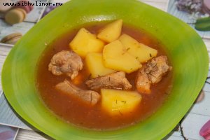 Баранину нарезать на кусочки и обжарить с луком в жире. Добавить капусту, очищенные и нарезанные кубиками груши. Тушить 20-30 минут. Перед подачей полить соусом. К этому блюду можно подать картофельный или гороховый мусс.