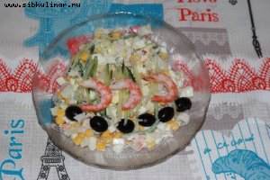 Квашеную капусту отжать от рассола, мелко порубить. Зеленый лук мелко нарезать. Вареных кальмаров нарезать соломкой. Все смешать, добавить растительное масло, соль, сахар и хорошо перемешать.