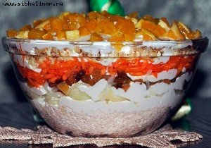 Сыр твердых сортов нарезать мелкими кубиками. Яблоки вымыть, срезать с них кожицу, удалить семенную коробочку и так же порезать кубиками. Корень сельдерея отварить и нарезать кусочками. Все составляющие смешать и заправить майонезом. Еще раз перемешать.