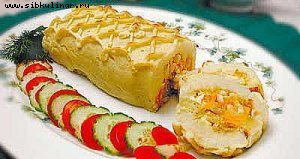 Варёную мякоть птицы (без кожи), очищенные свежие огурцы, очищенные от кожицы и семенного гнезда яблоки нарезать тонкой соломкой. Затем слоями уложить в фужер или бокал, полить соусом, украсить ломтиками огурцов и яблок. Можно посыпать мелко нарезанной зеленью.
